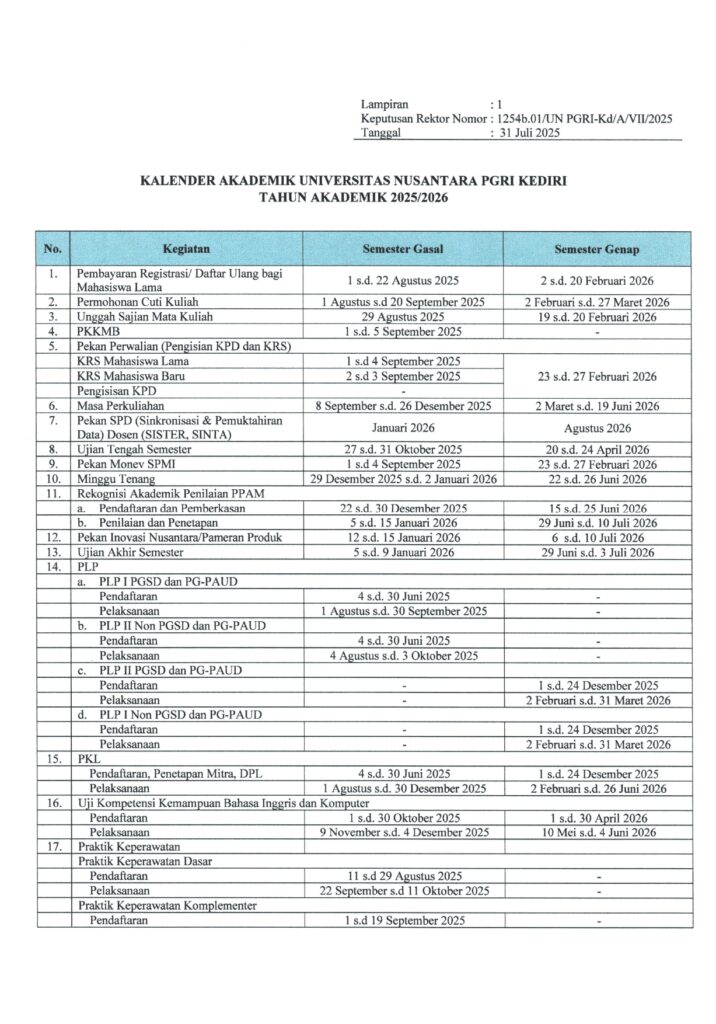 PANDUAN PENGISIAN KRS DISIAKAD2 SELAMAT DAN SUKSES HIMA PGSD LOLOS SELEKSI INTERNAL PPK ORMAWA UNP KEDIRI 2025 SELAMAT MEMPERINGATI ISRO' MI'ROJ NABI MUHAMMAD SAW PENGUMUMAN LIBUR NASIONAL DAN CUTI BERSAMA 1365 Mahasiswa UNP Kediri Jalani KKNT , Pj Wali Kota Kediri : Bermanfaat Untuk Kota Kediri